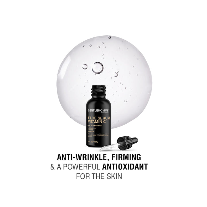 Gentlehomme Vitamin C Face Serum is a powerful antioxidant for the skin & has advanced hydration formula with hyaluronic acid, & vitamin E. Add to cart now!